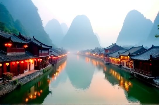 - Yangshuo, Guangxi: Karst mountains tower over peaceful Li River cruises and bamboo rafting adventures.