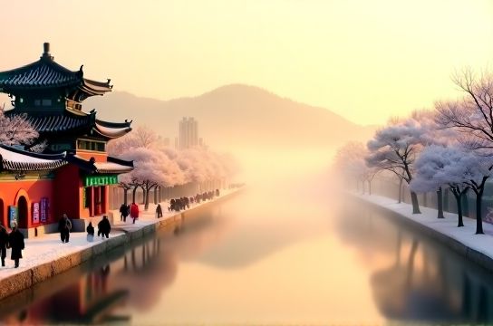 When temperatures drop below -15°C, Jilin transforms into a fantasy world thanks to 雾凇 (wusong) — rime ice that coats trees along the Songhua River. This natural phenomenon draws over 2 million tourists annually during peak season (December–February).