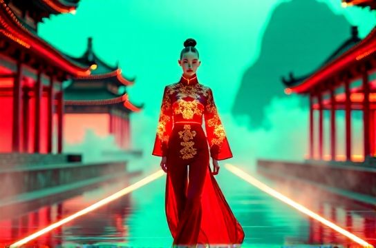 The new Chinese style blends classical elements like ink-wash aesthetics, Ming-Dynasty silhouettes, and porcelain patterns with contemporary materials and urban functionality. Think: silk bomber jackets, calligraphy-print sneakers, or smart home devices wrapped in lattice wood finishes inspired by Suzhou gardens.